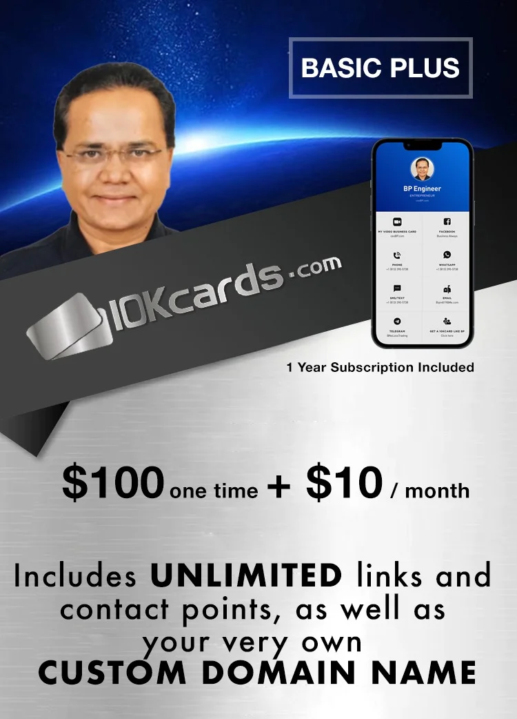 Get a revolutionary digital card with up to 10 links/contact points included.