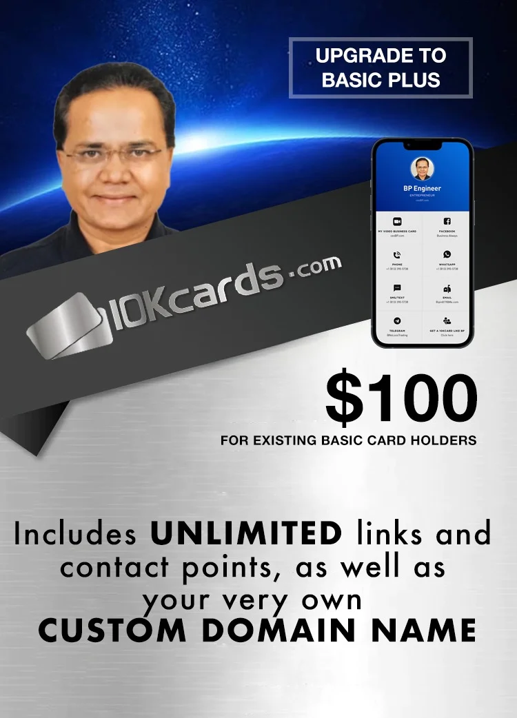 Get a revolutionary digital card with up to 10 links/contact points included.