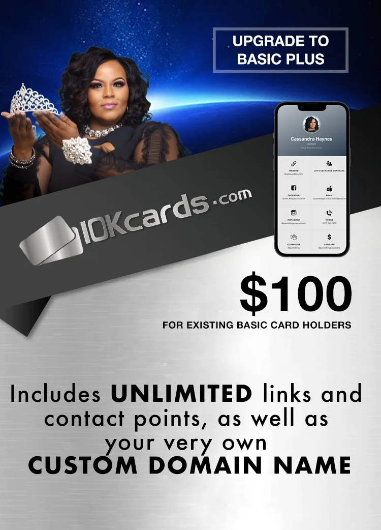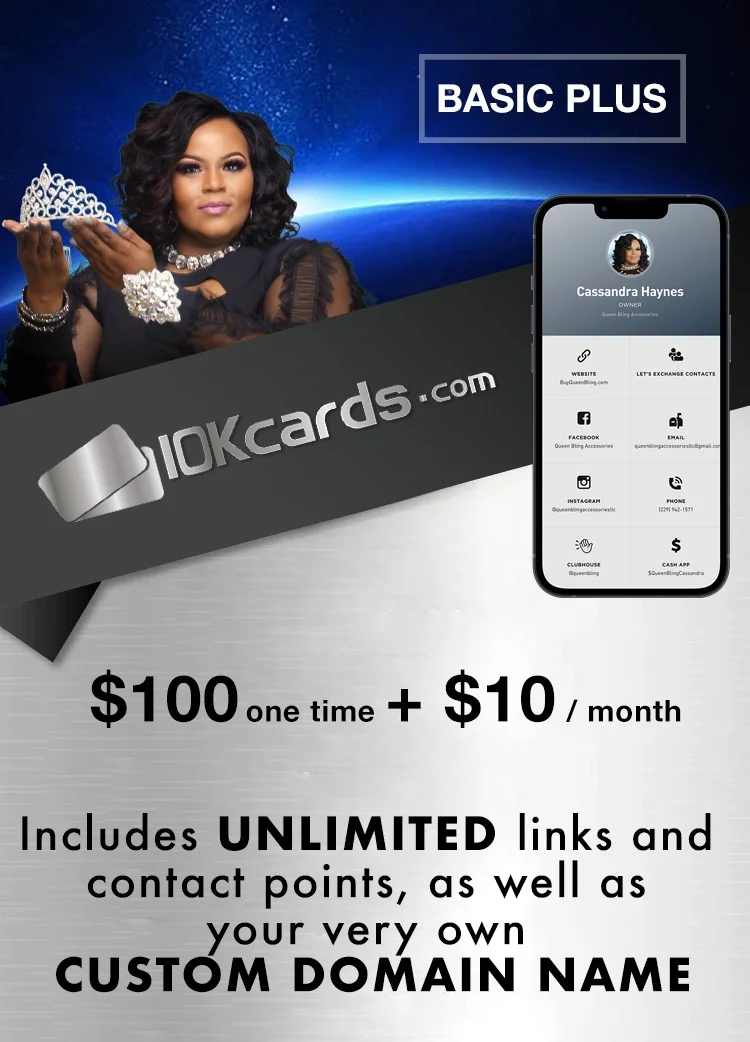 Get a revolutionary digital card with up to 10 links/contact points included.