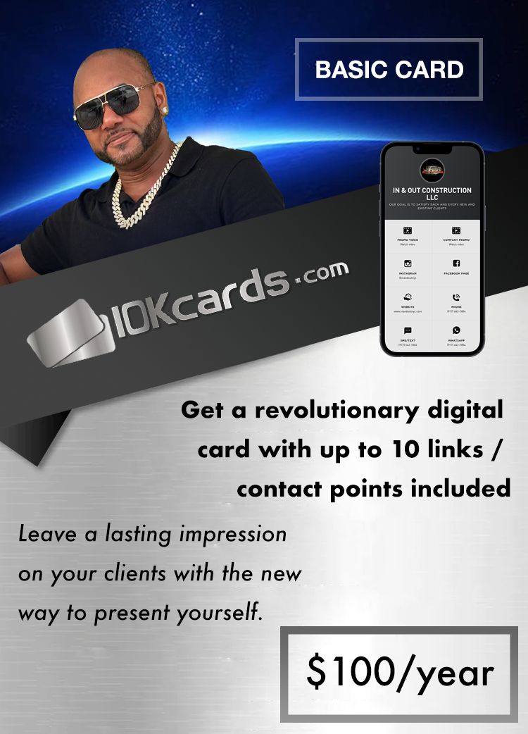 Get a revolutionary digital card with up to 10 links/contact points included.