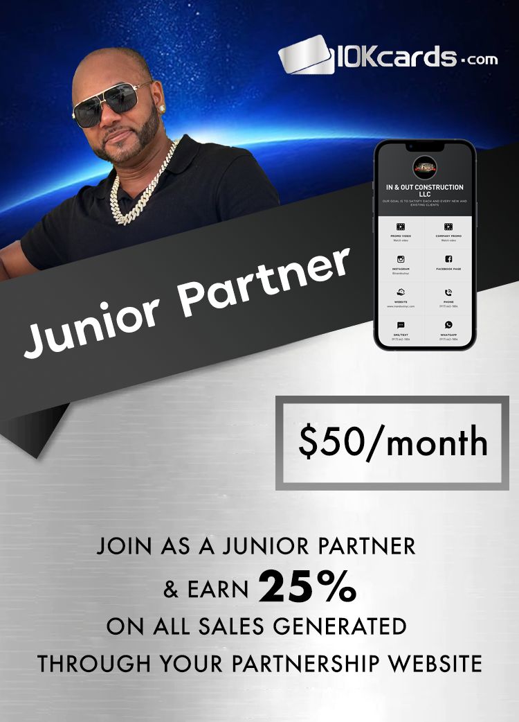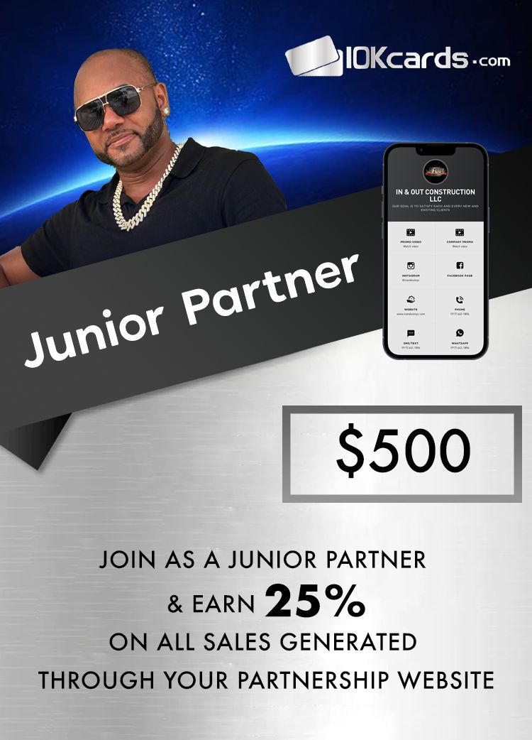 Join as a junior partner & earn 25% on all sales generated through your partnership website