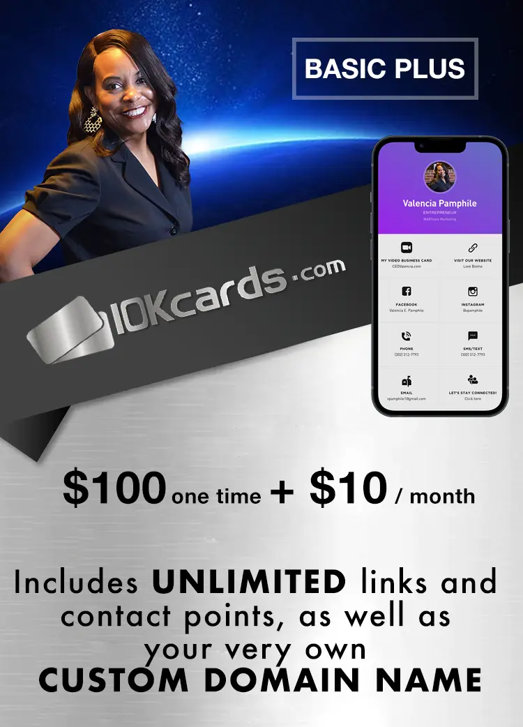 Get a revolutionary digital card with up to 10 links/contact points included.
