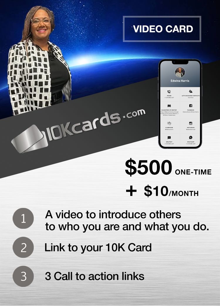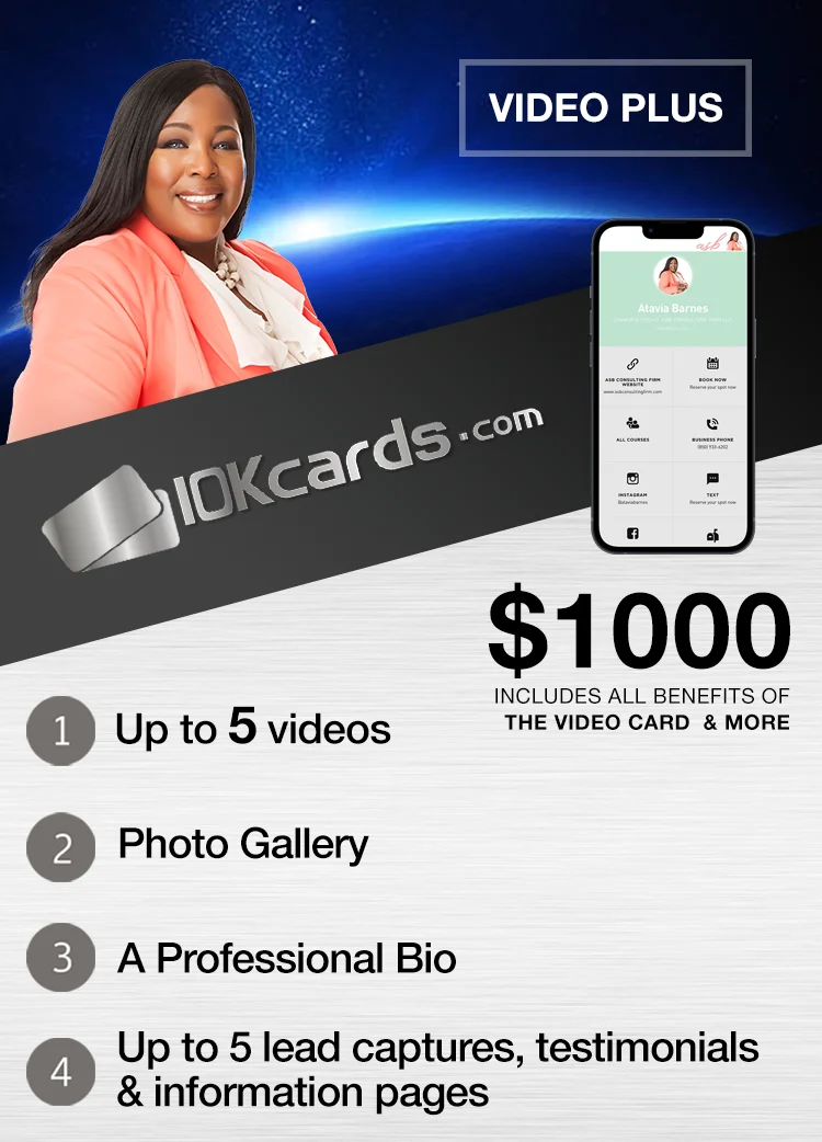 Leave a lasting impression on your clients with the new Video way to present yourself. Pay a one time cost of ONLY $500 to set up and ONLY $10/month subscription to maintain your Video Business Card.
