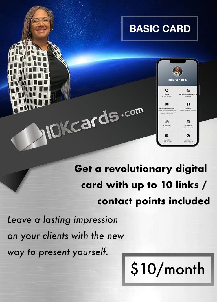 Get a revolutionary digital card with up to 10 links/contact points included.