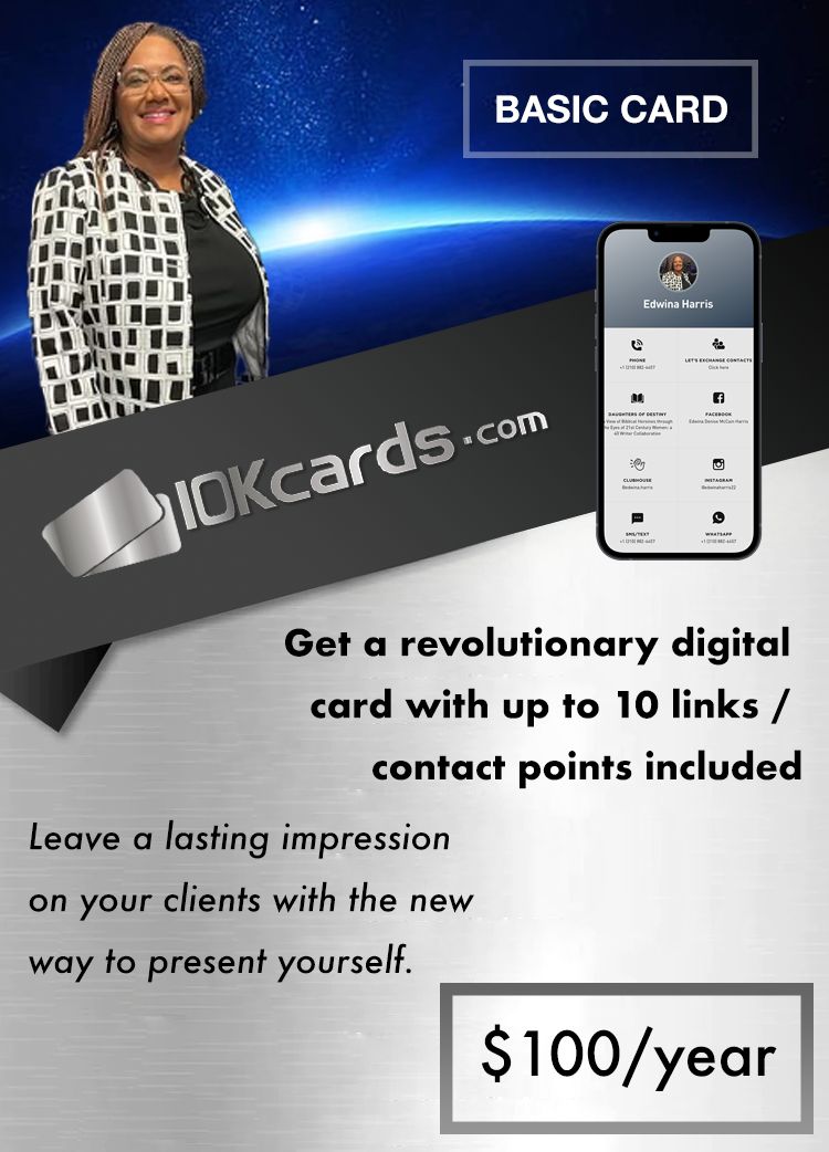 Get a revolutionary digital card with up to 10 links/contact points included.