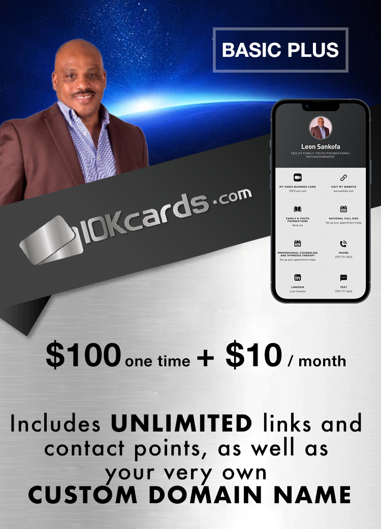 Get a revolutionary digital card with up to 10 links/contact points included.