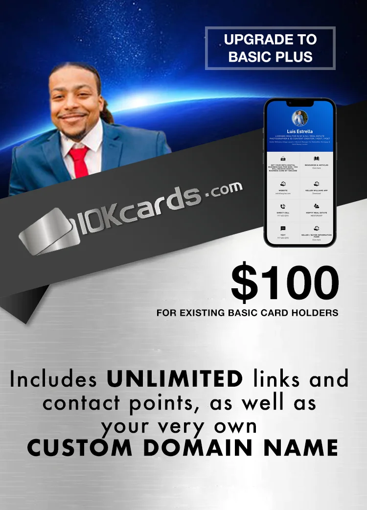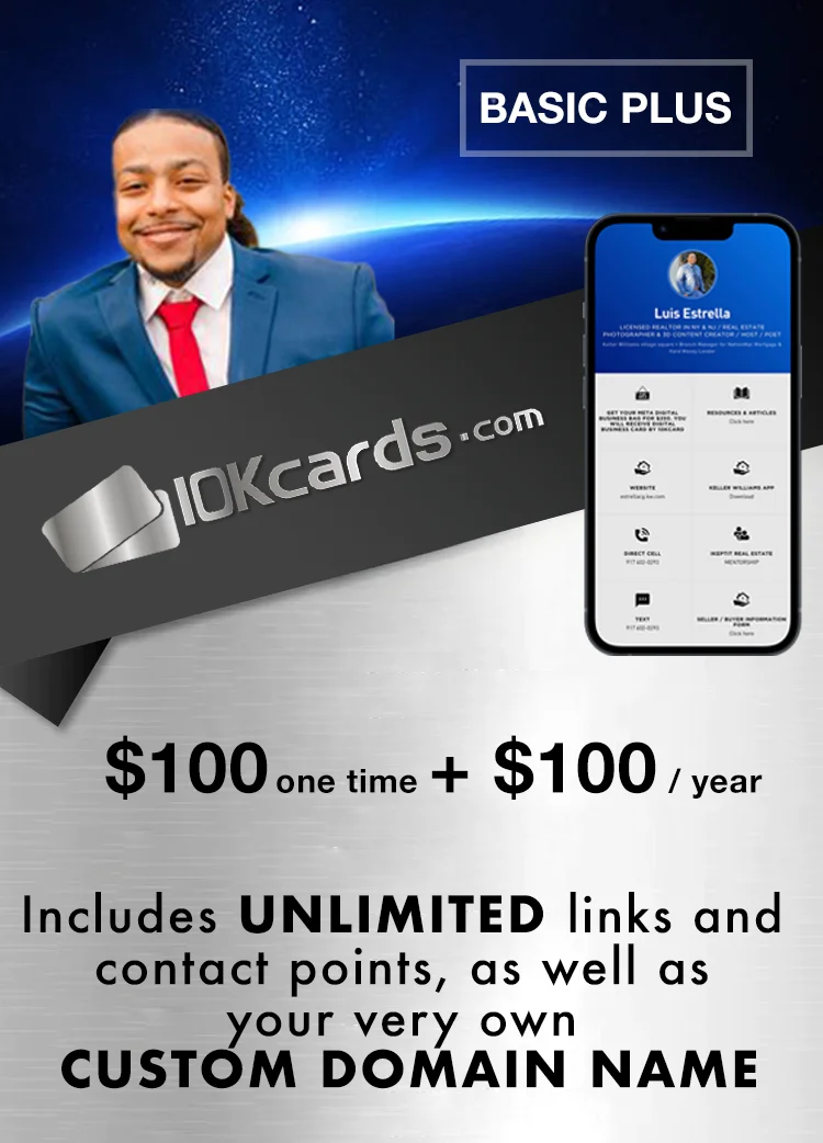 Get a revolutionary digital card with up to 10 links/contact points included.