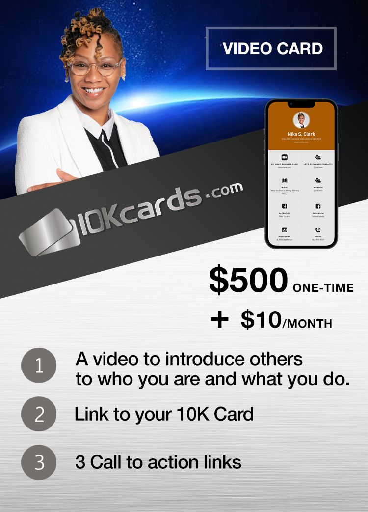 Leave a lasting impression on your clients with the new Video way to present yourself. Pay a one time cost of ONLY $500 to set up and ONLY $10/month subscription to maintain your Video Business Card.