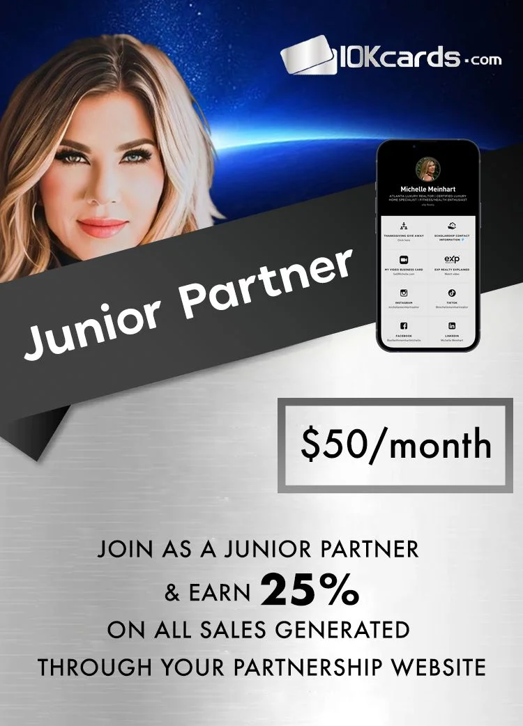 Join as a junior partner & earn 25% on all sales generated through your partnership website